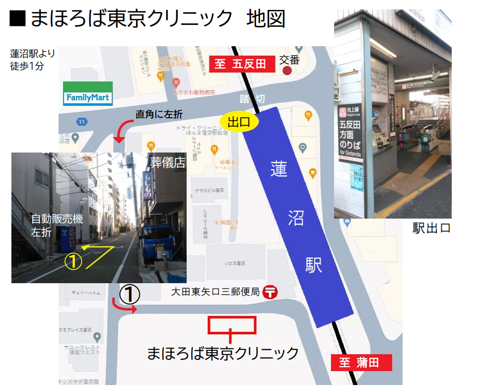 JR京浜東北線【蒲田駅】で「池上線(五反田行き)」に乗り換え、1つ目の駅【蓮沼駅】徒歩1分。
