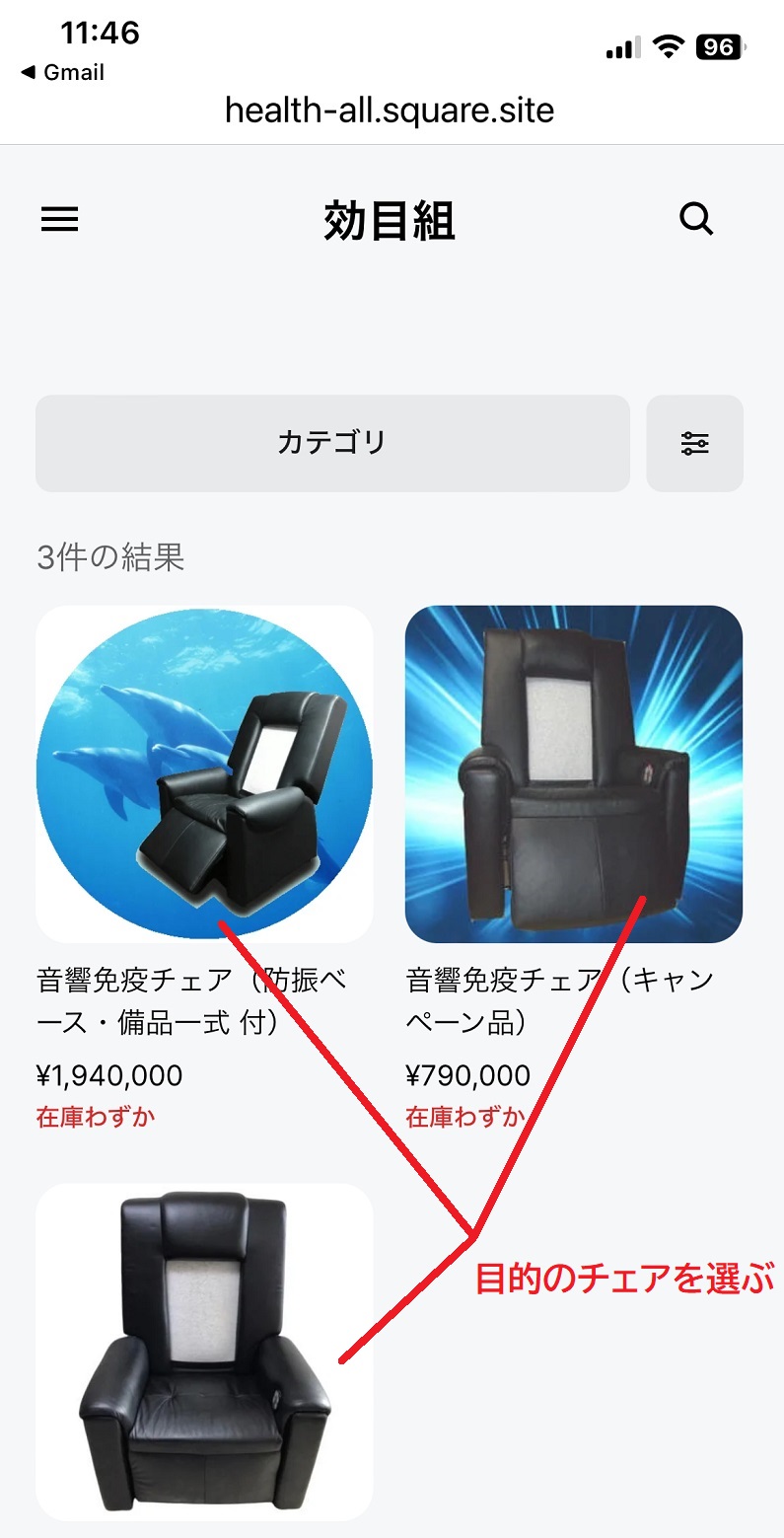 購入したい商品を選ぶと「商品詳細ページ」に行きます。